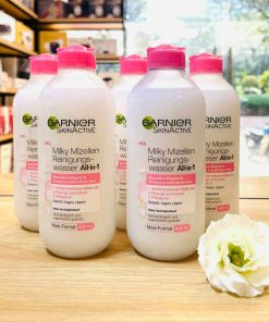 - Sữa tẩy trang Garnier dùng cho da khô và da nhạy cảm, với thành phần thiên nhiên, công nghệ Micellar giúp làm sạch da nhẹ nhàng, không kích ứng.
