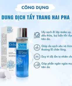 - Làm sạch da luôn được xem là một trong những bước chăm sóc da vô cùng quan trọng, bởi da chưa đủ sạch thì các dưỡng chất khó thể nào mà thẩm thấu vào da và phát huy mọi tác dụng. Vì thế, ngoài bước sử dụng sữa rửa mặt thì tẩy trang được xem là bước skincare không thể nào thiếu của mọi tín đồ làm đẹp. Tẩy trang hai pha Oribe góp phần lấy đi lớp make up, bụi bẩn, bã nhờn một cách nhanh chóng đồng thời trả lại cho bạn làn da thông thoáng và mềm mịn.