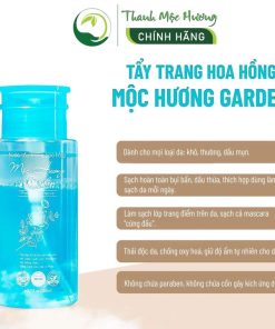 – Nước tẩy trang Mộc Hương Garden làm sạch dịu nhẹ cho làn da mềm mại, khỏe mạnh, loại bỏ lớp trang điểm, bụi bẩn, dầu thừa trên da