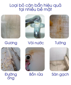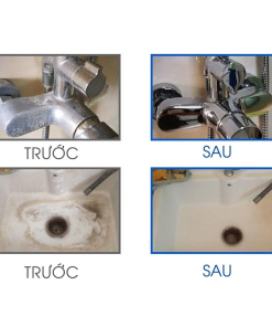 – Chai tẩy canxi này làm sạch vết canxi bám lâu ngày, không ăn mòn làm hỏng vòi nước, gương kính cũng như mới luôn.