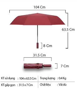 Ô Dù Tự Động 2 Chiều Gấp Gọn 10 Nan Xuất Nhật Cao Cấp – Hàng Loại 1