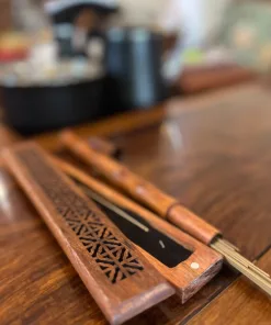 Hộp Gỗ Xông hương: có miếng lót chống cháy, chỉ cần đốt thanh trầm và đặt nằm ngang trên miếng lót chống cháy, đậy nắp lại hương thơm sẽ tỏa ra.