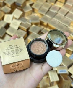 Phấn nước Dior Prestige Cushion 4g mini. Vỏ hộp sang trọng, xa xỉ là sự kết hợp giữa sức mạnh giúp hồi sinh làn da rạng rỡ từ 500 cánh hoa hồng với sự hoàn hảo trong công nghệ makeup tân tiến của một lớp nền thế hệ mới, vừa là một sản phẩm trang điểm hoàn hảo, vừa là một sản phẩm dưỡng da hằng ngày giúp ngăn ngừa sự già hoá, dưỡng da căng bóng và đều màu hơn sau mỗi lần sử dụng.