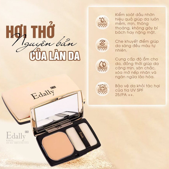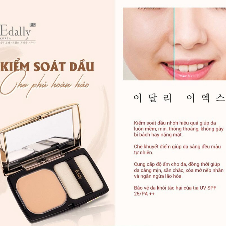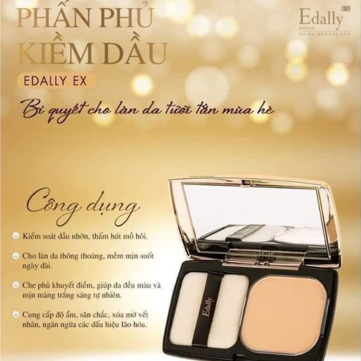 – Phấn phủ dưỡng ẩm, kiềm dầu siêu mịn Edally EX Kiềm dầu, mỏng mịn, không bí bách, bền màu hay che phủ tốt, không kích ứng da là từ khóa mà mọi cô gái đang tìm kiếm cho một lớp trang điểm hoàn hảo để nuông chiều làn da khó tính.