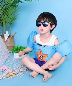 - Thiết kế kiểu phao tay liền thân với khóa điều chỉnh phía sau, giúp bé dễ dàng nổi trên mặt nước để tập bơi