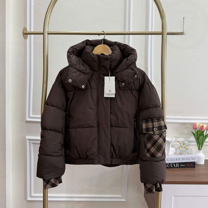 Chất phao siêu nhẹ ấm áp kết hợp phối túi tay phá cách. Túi kéo khóa dễ dàng đựng đồ.