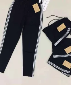 - Mẫu kẻ 3 sọc 2 bên sườn quần mang lại hiệu quả thẩm mỹ dáng thể thao năng động.