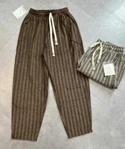 – Thiết kế quần dáng baggy thụng giúp người mặc thoải mái vận động. Họa tiết kẻ sọc mang lại sự năng động, trẻ trung và khỏe khoắn cho người mặc