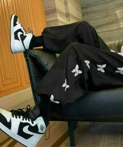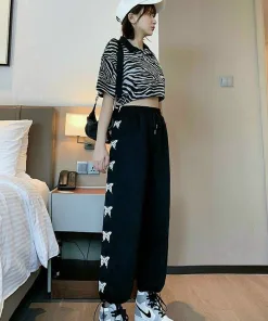 Kiểu dáng: quần ống rộng có cạp chun co giãn, có túi 2 bên , in 2 bên line thun dáng suông có bo rút gấu.