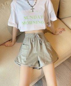 Quần short dáng ngắn trên gối, cạp chun co dãn có dây buộc