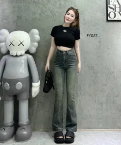Quần Jean Lưng Cao dáng loe với chất liệu jean VNXK hàng đẹp chuẩn form. Lưng cao che mỡ bụng hack dáng.