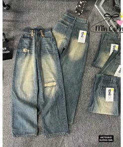 🔥 Mang phong cách retro của những năm thập niên 90, Quần Jean Nữ Ống Rộng Wash Bụi Rách rất được lòng các cô nàng khi style cổ điển đang lên ngôi trong thời gian gần đây.