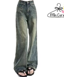 Tên sản phẩm: Quần Jean Nữ Ống Rộng Wash Màu Dơ Bụi Phong Cách Retro Cá Tính Năng Động MQ184 – MIN CORNER