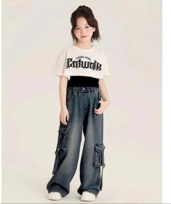 1. Tên sản phẩm : Quần Jean Ống Suông Túi Hộp Dây Bé Gái Phong Cách Hàn, Jean Cotton Mềm Nhẹ – 2 Màu Cá Tính Từ 18-50kg Dành Cho Bé Gái