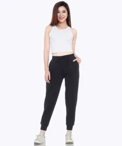 - Thiết kế dáng jogger nữ khỏe mạnh kết hợp với kiểu dáng bo gấu năng động.