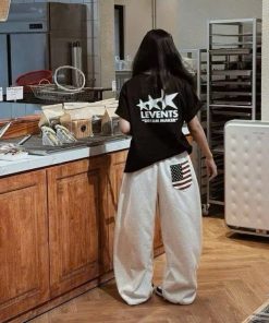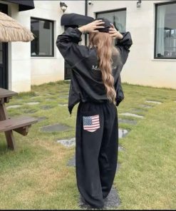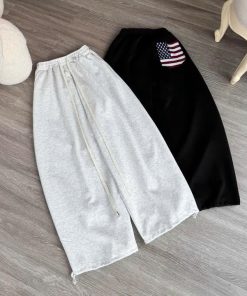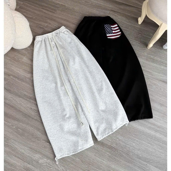 Chiều dài quần rộng rãi, bo gấu nhẹ hoặc cổ đứng (tùy mẫu), giúp set đồ hoàn chỉnh với áo hoodie, sweater, crop top, áo thun oversize,…