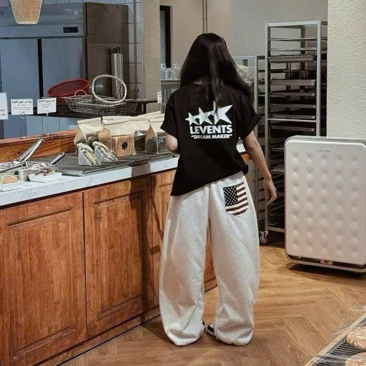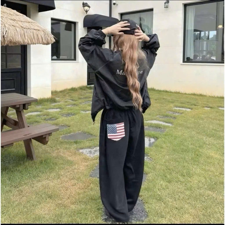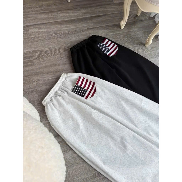 Đặc biệt, mẫu quần đen có họa tiết lá cờ Mỹ ở túi trước tạo điểm nhấn nổi bật, phong cách streetwear chất lừ.
