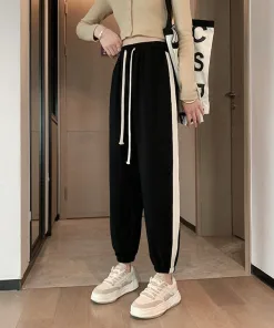 QUẦN JOGGER NHUNG TRƠN PHỐI SỌC MÀU PHONG CÁCH VINTAGE DÀNH CHO BẠN NỮ