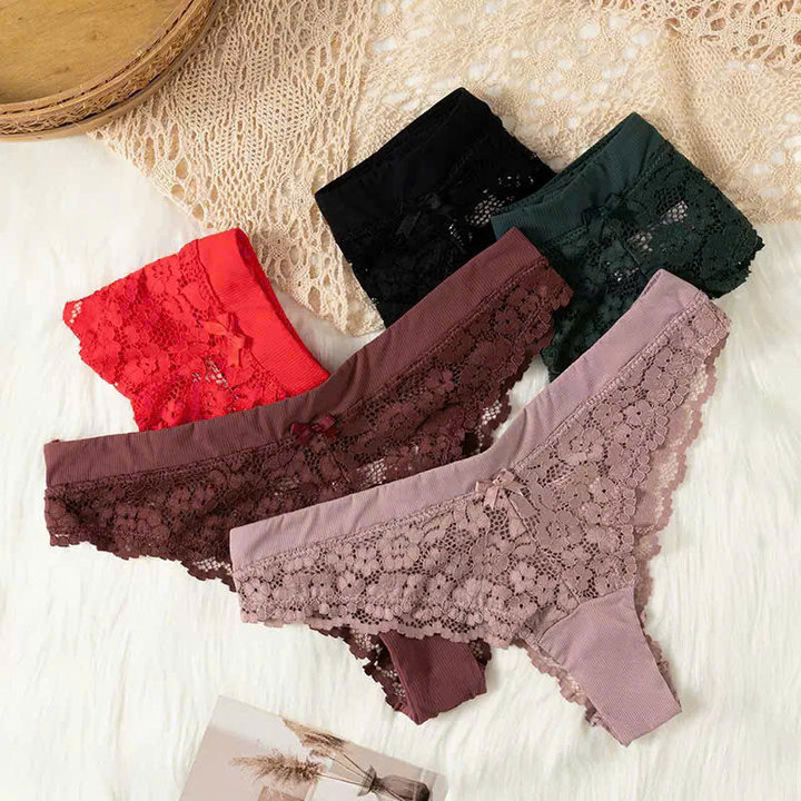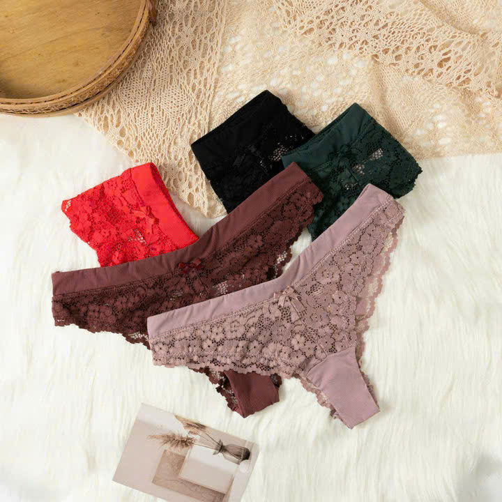 4. Thiết kế : Kiểu quần lọt khe quyến rũ , Vải ren sờ vào mềm mịn nên vô cùng thoải mái khi mặt. Lưng quần chất thun co giãn.