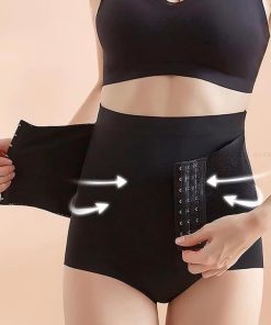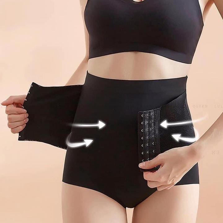 - Quần gen nịt bụng móc cài trước vừa thiết kế có thêm đai cài cúc chống cuộn.