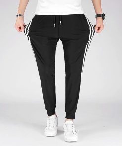– Với thiết kế ống bo, phối sọc thể thao mang lại phong cách thể thao cho người mặc. Bên cạnh đó , quần kiểu kiểu quần chun nên giúp các bạn nam thoải mái tham gia các hoạt động thể thao, ngoài trời