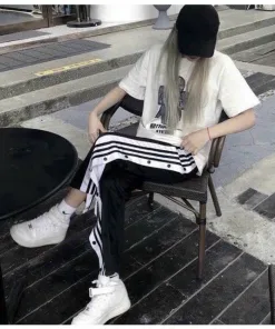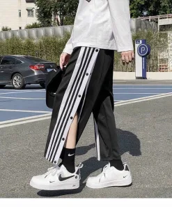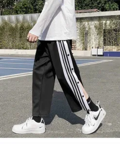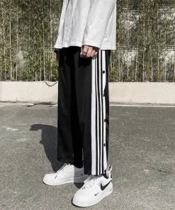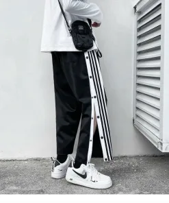 Quần Nam Phối Theo Phong Cách Có Cúc Bấm Xẻ Tà Siêu Ngầu Có Kẻ Sọc Trắng Đen Dáng Kiểu Form Dài Hàng Dễ Thương Mặc Mọi Dịp Hàng Hot Trend-HTM FASHION