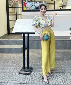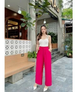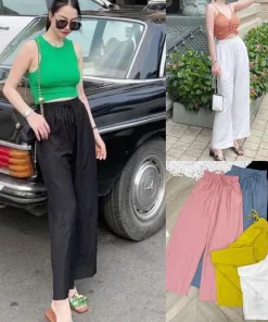 Dáng: Quần ống rộng, dài đến mắt cá chân.