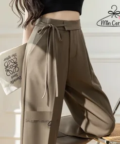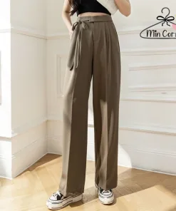 Quần ống suông nữ , quần ống rộng nữ lưng cao thắt dây nơ vải Ruby Quảng Châu dày dặn không nhăn không xù