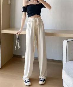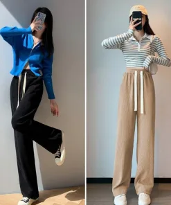 – Quần với thiết kế ống suông, cạp cao cực kì hack dáng, bên cạnh đó phần cạp chun co giãn cũng là một điểm cộng cực lớn giúp người mặc thoải mái vận động