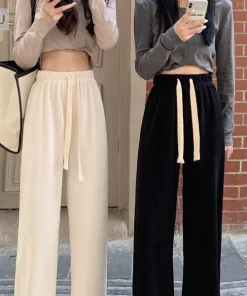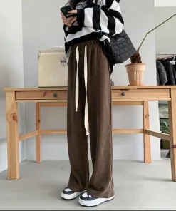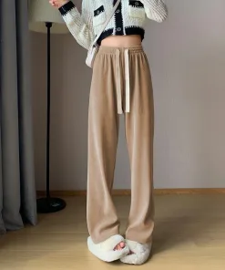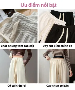QUẦN ỐNG RỘNG CẠP CAO CHẤT NHUNG TĂM DÀY DẶN TRẺ TRUNG, NĂNG ĐỘNG