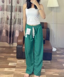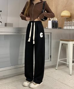 QUẦN ỐNG RỘNG DÂY RÚT THÊU CHỮ C PHONG CÁCH THỂ THAO DÀNH CHO BẠN NỮ