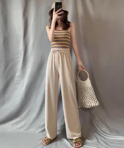 - Quần ống rộng gân tăm siêu mát với chất liệu vải gân tăm siêu mát lạnh.