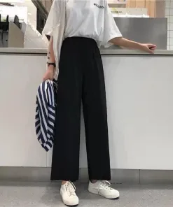 - Quần ống rộng suông nữ lưng cao vải mềm