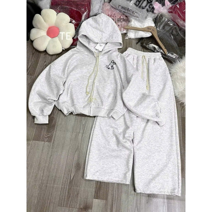 Mô Tả Sản Phẩm:Bộ nỉ 2da: Quần ống rộng xám tiêu+ kết hợp áo khoác nỉ