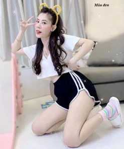 - Dáng quần đùi với thiết kế cạp chun có dây buộc dễ dàng điều chỉnh kích thước.