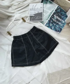 - Kiểu dáng quần đùi lưng thun trên gối, có viền chỉ nổi giúp nổi bật. Chất liệu kaki mềm ngồi rất thoải mái.
