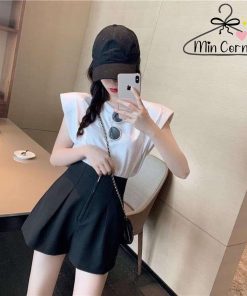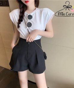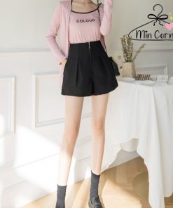 QUẦN SHORT NỮ ỐNG RỘNG LƯNG CAO KHÓA KÉO TRƯỚC 2 MÀU ĐEN TRẮNG MQ18 – MIN CORNER