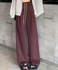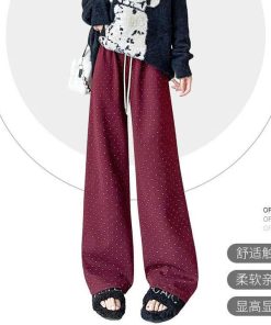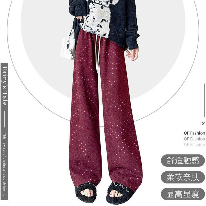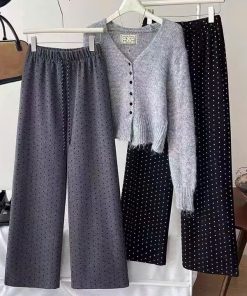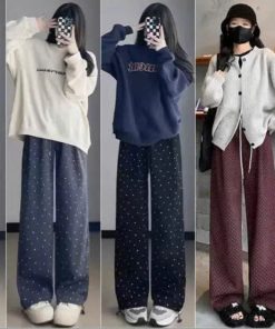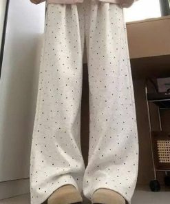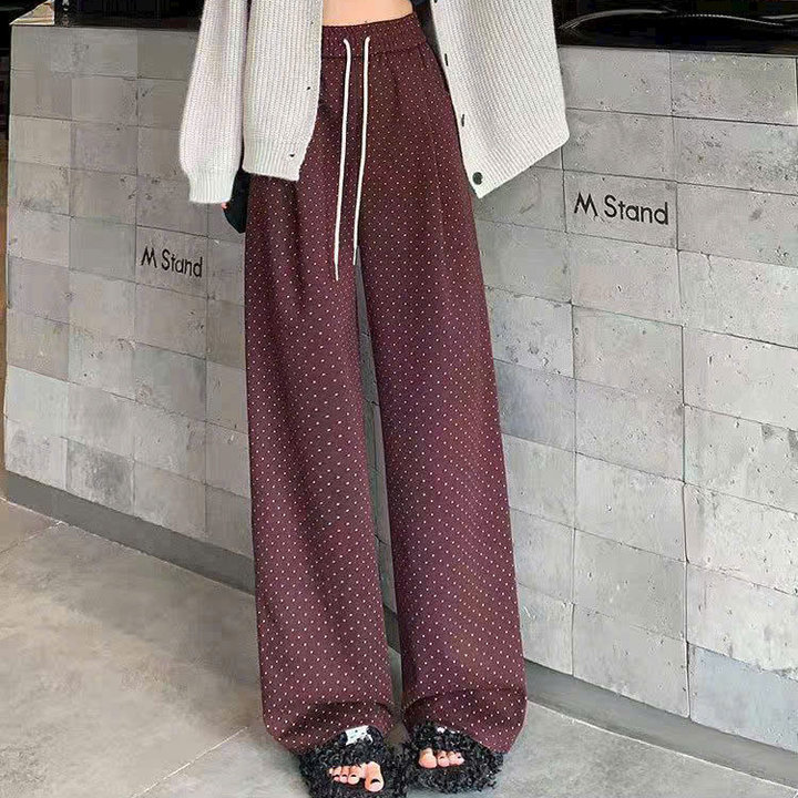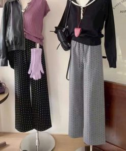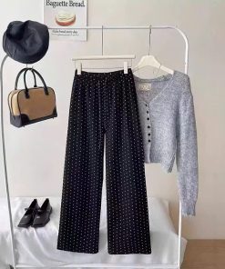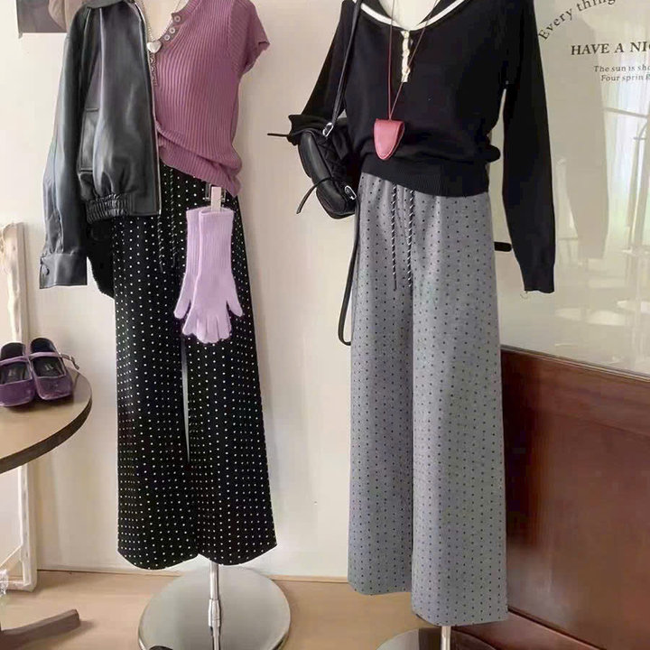 Quần suông ống rộng ống đứng chấm bi phong cách Hàn Quốc từ 40-60kg dành cho nữ