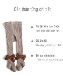 – Quần tất cạp cao, hạn chế gió lùa làm lạnh bụng bé. Cạp quần lưng thun mịn màng, co giãn vữa phải, không gây hằn in vệt đỏ lên da gây tổn thương, làm bé khó chịu khi vận động.