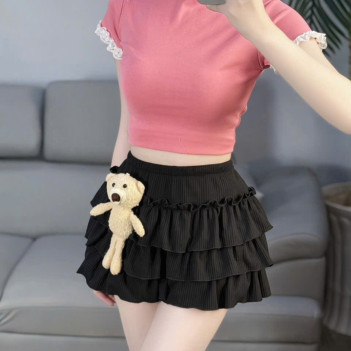 Quần váy gân tầng đây rồi ạ, dễ mặc dễ mix với tất cả các kiểu áo.