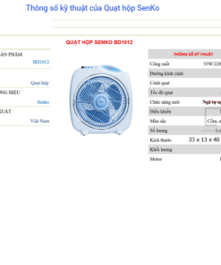 - Với thiết kế nhỏ gọn, tích hợp nhiều tính năng mới, Quạt hộp Senko BD1012 sẽ là sự lựa chọn tối ưu cho người tiêu dùng. 3 cấp tốc độ gió dễ dàng và tiện lợi hơn cho người sử dụng. Đồng thời, với dạng quạt hình vuông, khá gọn,