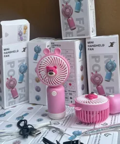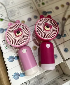 Quạt mini cầm tay gấu hồng, quạt cầm tay mini dễ thương kèm sạc cổng USB tiện lợi