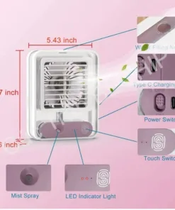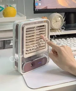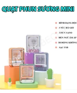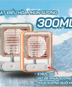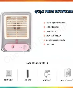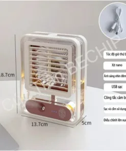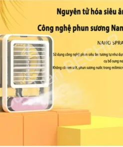 Quạt tích điện điều hòa hơi nước phun sương mini làm mát không khí để bàn nhỏ gọn, phun sương mạnh nhiều chế độ có bình đựng nước, nốt chạm cảm ứng, pin sạc tích điện, có đèn