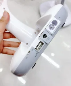 - Có cổng sạc bằng đầu USB, nên khi dùng hết pin của Quạt, chúng ta sẽ dễ sạc lại cho Quạt bằng cách cắm cổng sạc USB vào máy tính, vào laptop