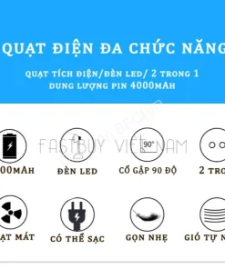 - Tên sản phẩm: Quạt tích điện Ông tây kèm đèn LED, có thể gấp gọn – BECHIP