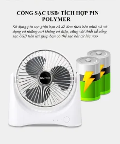 Quạt tích điện mini để bàn bán nguyệt được xem là giải pháp xua tan đi nóng nực cho các bạn học sinh, sinh viên hoặc dân văn phòng. Thiết kế để bàn của sản phẩm vô cùng gọn nhẹ, tiện lợi cho sử dụng.