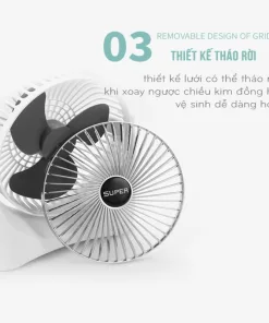 Thiết kế quạt để bàn nhỏ gọn, tiện lợi, làm mát nhanh chóng mà không tốn nhiều diện tích. • Giá đỡ quạt chắc chắn, cố định quạt không bị xê dịch hoặc lung lay khi sử dụng.