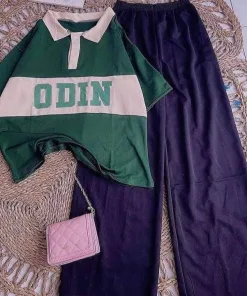 [ Rẻ Vô địch ] Sét Bộ đồ Quần ống Rộng Cạp Chun Hack Dáng đen + Mix Kèm áo Polo Chữ Odin Form Rộng Unisex