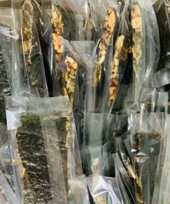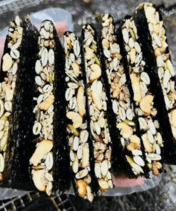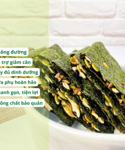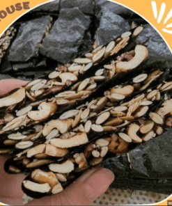 - Rong biển kẹp hạt dinh dưỡng: Hạnh nhân lát, hạt điều, hạt bí, mà trắng mè đen, hạt chia, gạo lức.