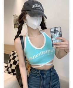 SALE SỐC ÁO CROTOP YẾM VIỀN TRẮNG DÂY QUẤN BỤNG ÔM BODY GU312-SAM FREESIZE < 52KG